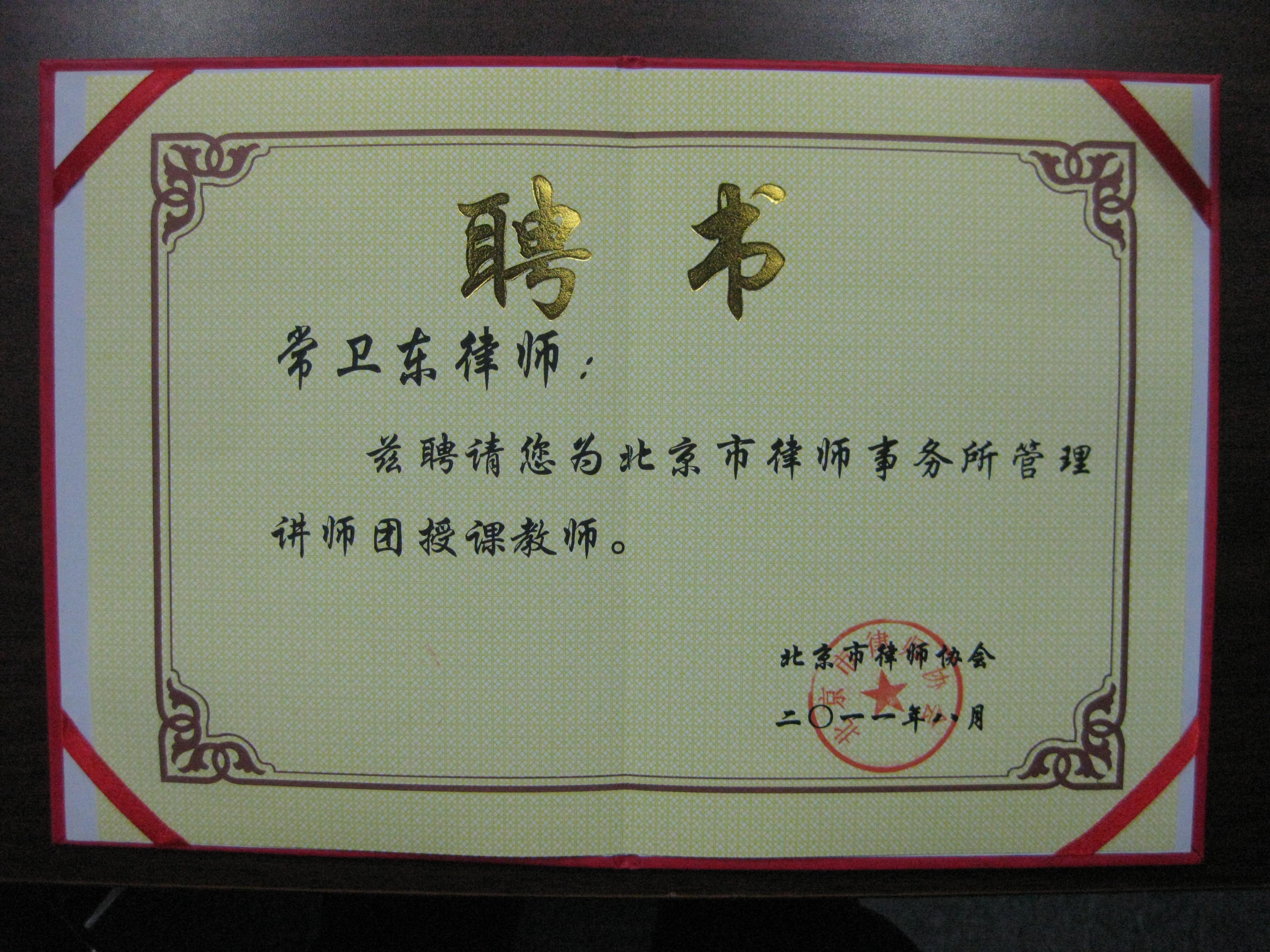 常鸿所主任常卫东被授予丰台区桥牌协会...
