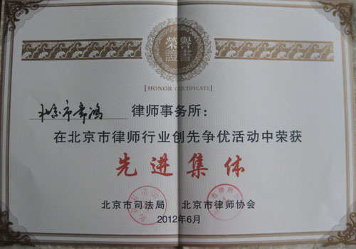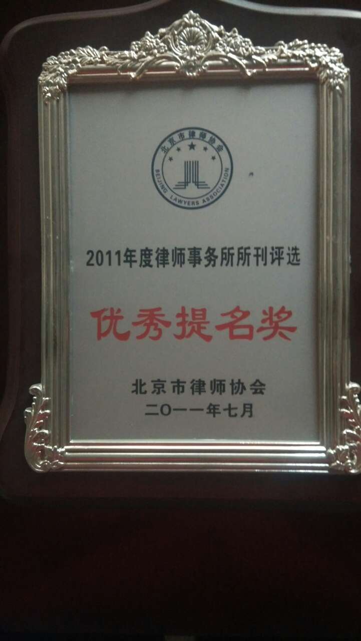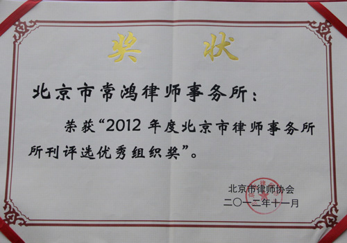 2012年度北京市律师事务所所刊评选优秀组织奖